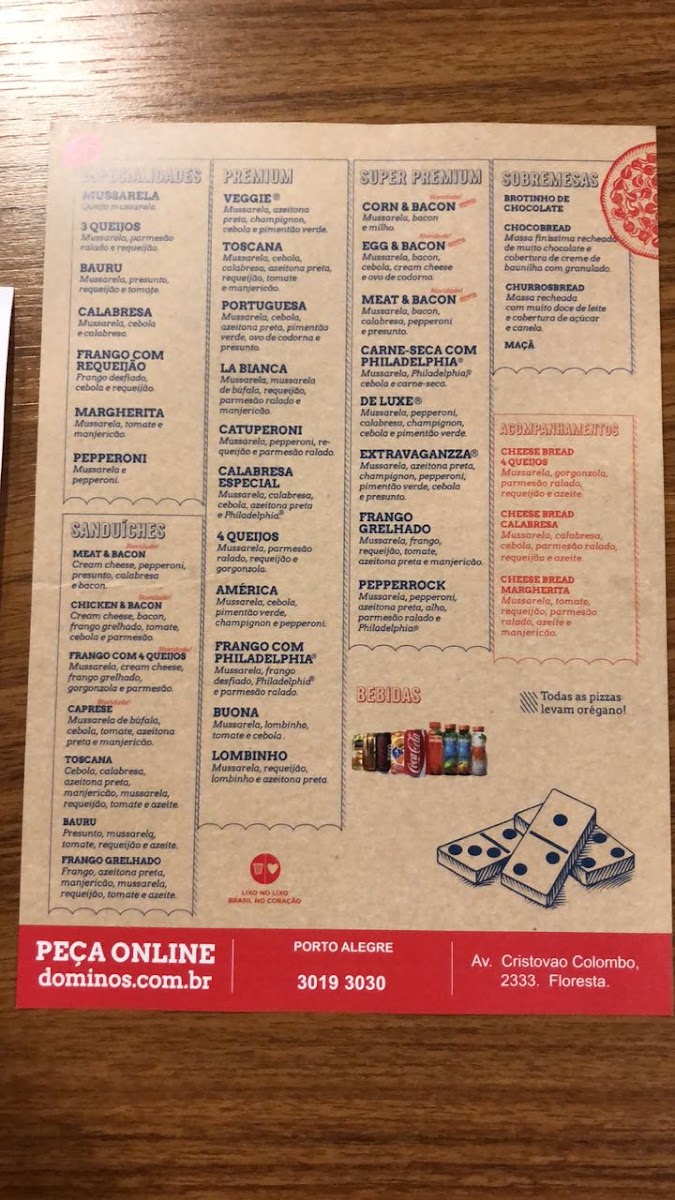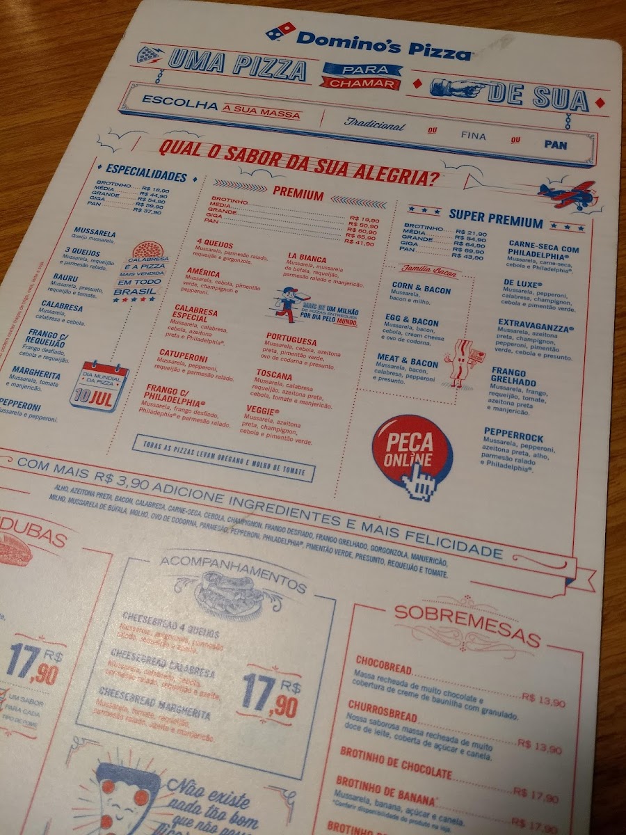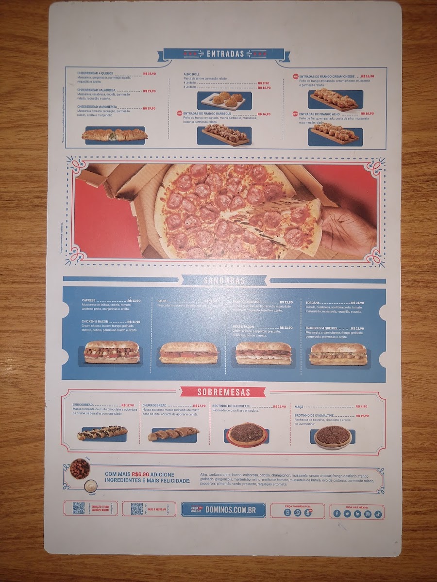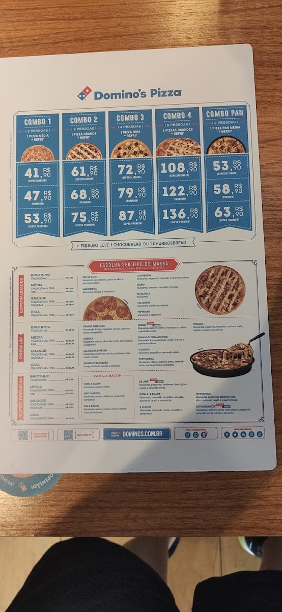 Domino’s Pizza in Porto Alegre offers a vibrant menu that caters to every pizza lover’s craving. Their standout feature is the diverse Meio a Meio (half-and-half) pizzas, available in various sizes—from medium to giga—with choices of traditional, pan, or thin crusts, giving you freedom to mix flavors and textures seamlessly. Notably, the pizzas arrive thin, packed with generous toppings, striking a perfect balance between crust and filling.